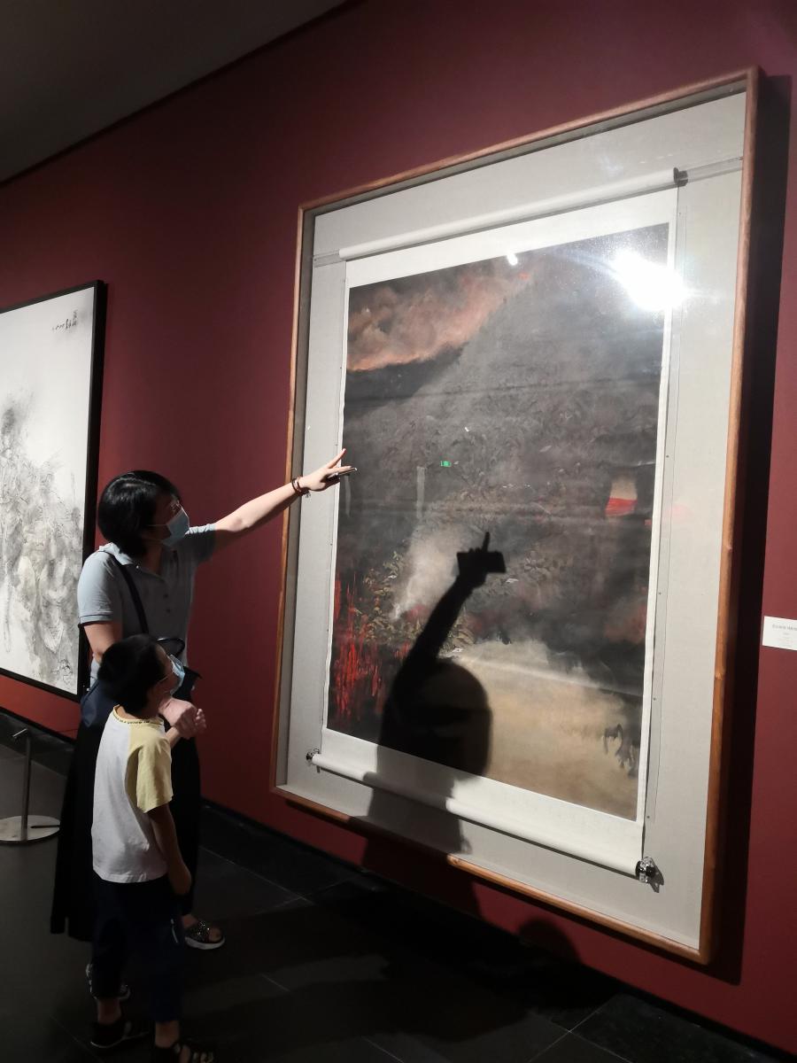 由于是周末,部分教工还带了孩子一起来参观,进行一次特殊的红色亲子活动。家长向孩子介绍艺术作品的历史、内涵,通过大手拉小手形式传承着红色文化和红色精神。孩子的牙牙之声中表达着对革命峥嵘岁月及中国时代发展足迹的仰望与赞叹。