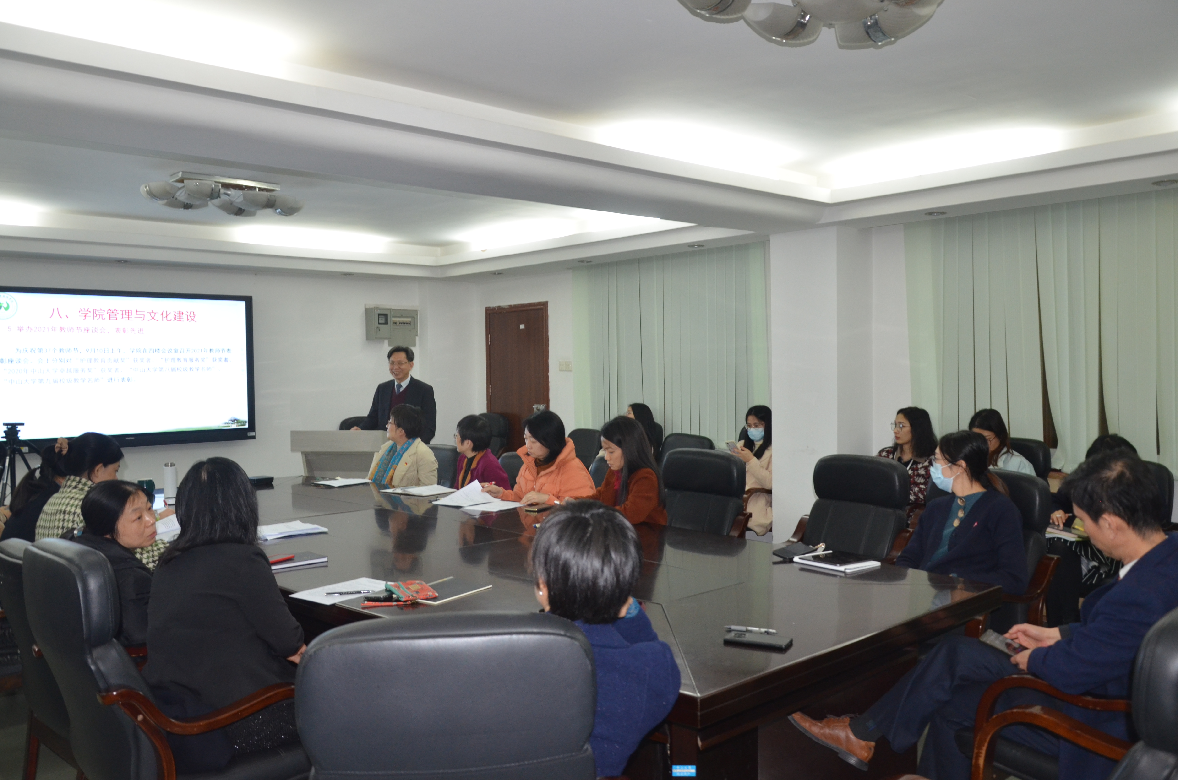 1月14日下午,护理学院在四楼会议室召开了第四届教职工大会暨工会会员大会第五次会议。学院全体教职工参加了会议,党委副书记李文敏同志主持会议。