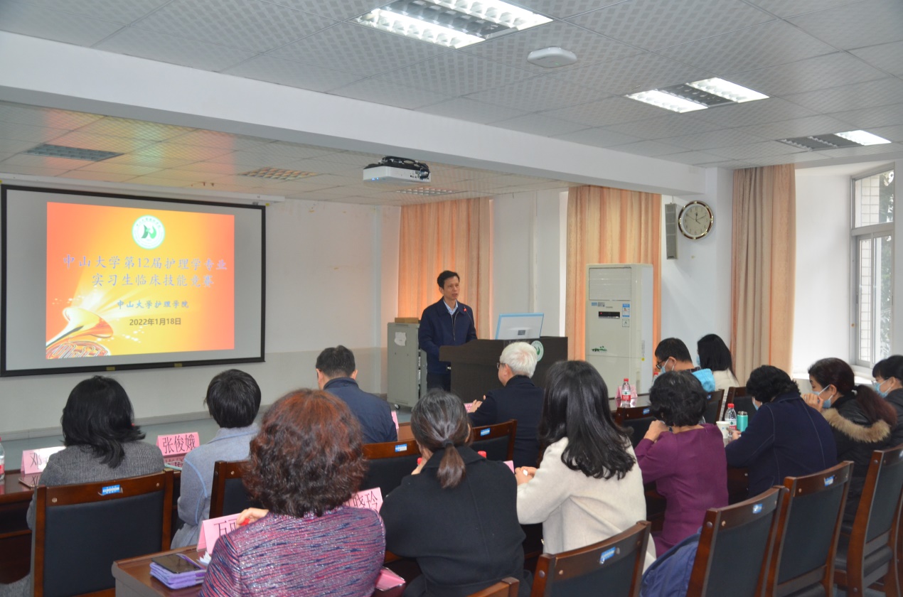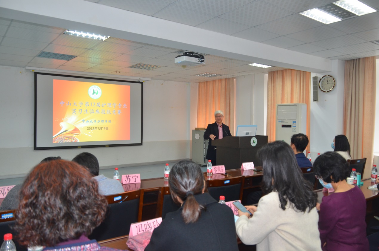 304永利第12届护理学专业实习生临床技能大赛于2022年1月18日在护理学院护理技能教学中心举办。经过各附属医院初赛推荐,我校2018年级18位护理学专业实习生参加比赛。中山六院、肿瘤医院、眼科医院、口腔医院临床及护理专家出席了活动并担任评委。教务部黎尚荣副处长观摩了大赛并给予现场指导。
