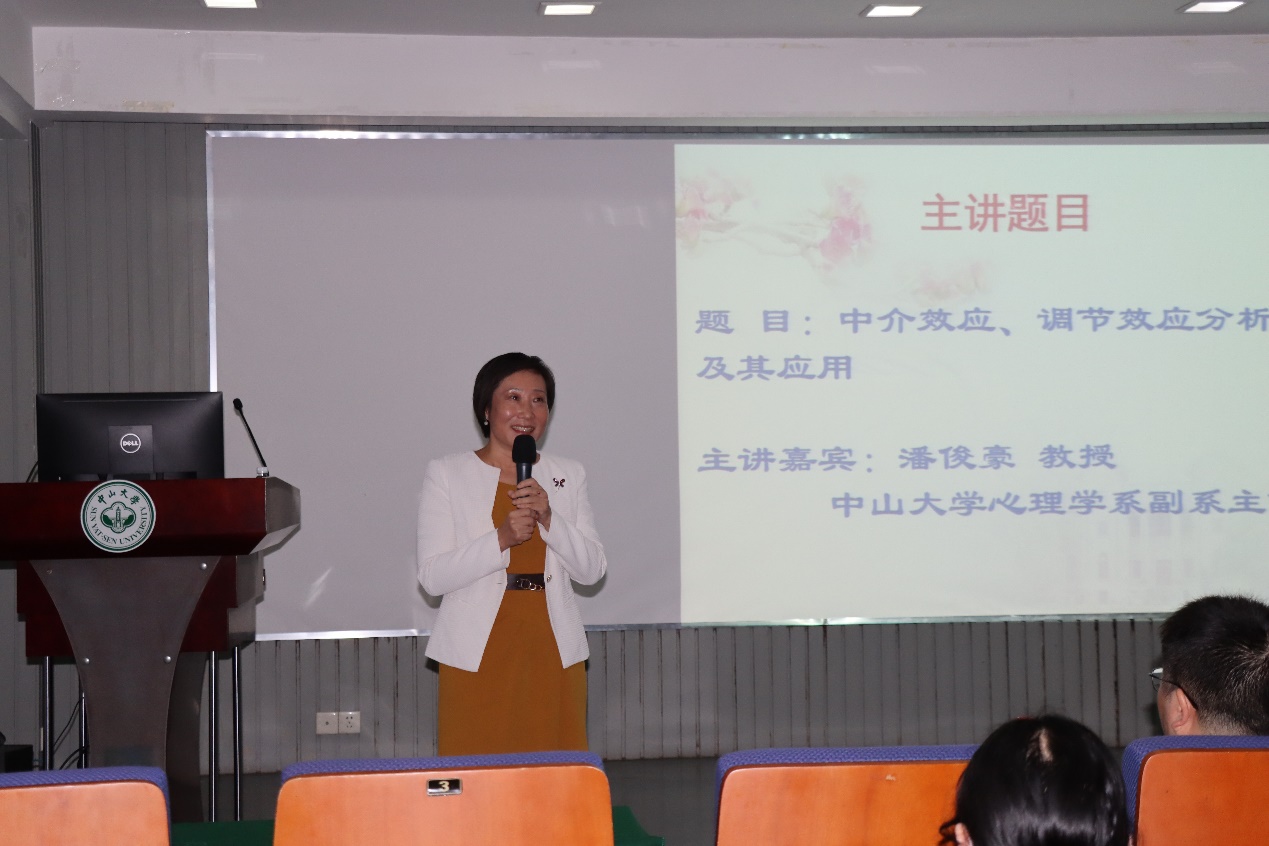 互动环节,同学们踊跃提问,潘教授均给予详尽解答。最后,张俊娥副院长指出,潘俊豪教授生动而详尽地讲述了中介效应、调节效应分析等统计方法及其应用,带给我们许多启发,护理学和心理学在很多方面有共通之处,也是非常适合进行学科交叉,也希望日后护理学院和心理学系能在更多的领域开展科研合作。最后,本次学术沙龙在师生的热烈掌声中完满结束。