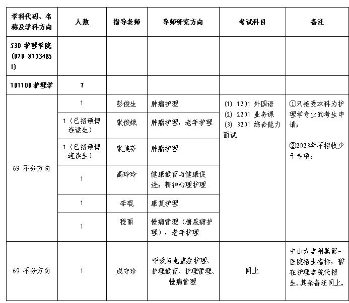 护理学院不招收学术学位定向就业博士研究生(不包括国家专项计划),招生目录如下: