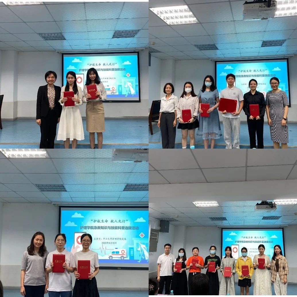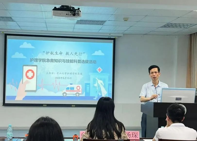 为推动学习贯彻习近平新时代中国特色社会主义思想主题教育走深走实,增强学生党员急救实践本领和能力,选拔优秀人才为我院党委“急救知识进校园、进社区、进企业”的“三进”品牌活动储备师资力量,5月15日晚上,由护理学院党委主办、学院团委与博士生党支部联合承办的“护航生命 救人先行”急救知识与技能选拔活动在学院二楼东讲学厅举行。护理学院党委书记陈昌龄,学院原党委副书记、中山六院现任党委副书记、纪委书记李文敏,学院团委书记何笑霞出席了活动,赵娟娟副教授、曹希副教授、杨琛副教授、白杨助理教授出席并担任评委。