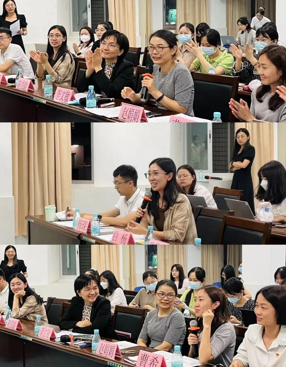 每组选手展示完毕后,评委老师对选手们的表现进行了打分和点评。赵娟娟副教授根据选手们在细节上存在的不足之处进行了逐一点评,并强调急救知识科普要用通俗易懂的语言和演示展示出具有科学性和严谨性的内容,让零基础的人也能够理解明白和掌握。白杨助理教授肯定了选手们在急救培训中做到了强调预防重要性的表现,同时从教学方式的角度出发,提出要针对不同的授课对象,选用相适应的教具,设计具有适应性强的教学内容。曹希副教授同样认为应该更加明确授课对象及特点,对应地更改授课内容和思路,同时强调了授课重点内容应该有更具体的操作演示。杨琛副教授则表示选手们学术用语偏多,应在科普授课能力和感染力上再下功夫。