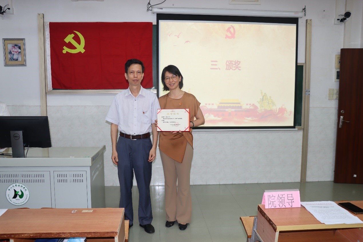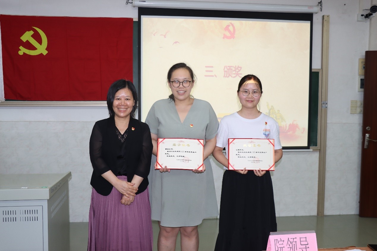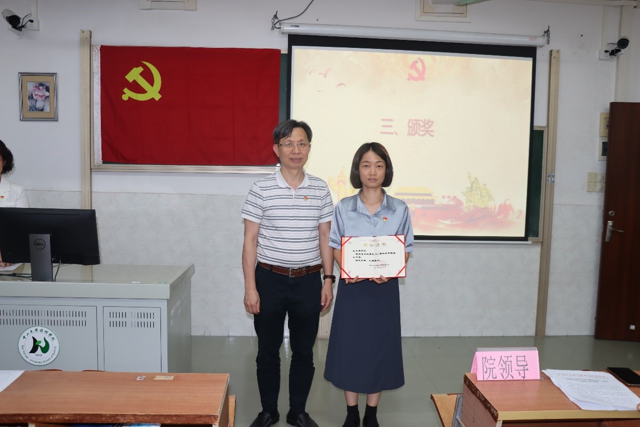 接着是颁奖环节。党委委员张美芬为优秀党员颁发荣誉证书,院长彭俊生为优秀党务工作者颁发了荣誉证书,党委书记陈昌龄为先进党支部颁发了荣誉证书。