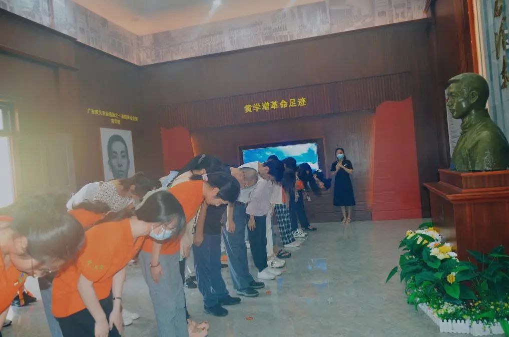 在讲解员的引导下,全体师生党员首先向黄学增烈士纪念铜像三鞠躬,表达对革命先辈的崇敬和缅怀;随后,在学院党委书记陈昌龄的带领下,全体师生党员重温入党誓词,表达永远听党话、跟党走的坚定决心;接着全体师生党员集中观看了介绍黄学增烈士事迹的专题片,并跟随讲解员参观了黄学增纪念亭、事迹陈列馆以及黄学增纪念广场,师生党员从中了解到黄学增同志短暂而光辉的一生,深深体会到黄学增烈士对于革命理想的执着追求和“丹心为人民,热血洒南国”的革命精神。