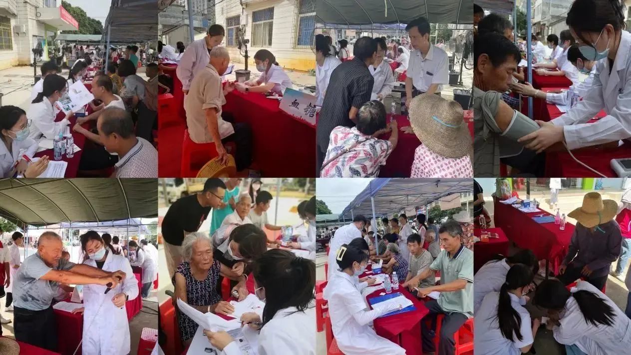 7月15日上午,在草潭镇党委政府和草潭镇卫生院的大力支持下,护理学院党委联合广州市越秀区派驻湛江市遂溪县草潭镇驻镇帮镇扶村工作队在草潭镇卫生院为周边村民群众开展了现场义诊及健康咨询服务。在义诊现场,前来就诊咨询的群众络绎不绝,师生党员为群众进行了健康史问询、讲解了日常保健常识、进行了BMI(体重指数)和体脂测量、血压和血糖测量、房颤筛查以及心电图检查,并耐心解释检查结果,给出针对性的防治建议,积极地回答村民们提出的问题,鼓励村民养成良好的健康生活习惯,同时留下了联系方式,方便日后及时咨询病情发展情况。在义诊的过程中,恰逢一位老人骑电动车不慎摔倒在路边,师生党员立即跑去将老人扶起,并对其右侧脚踝伤口进行了消毒和包扎,确定老人无大碍后,再把老人家送走。