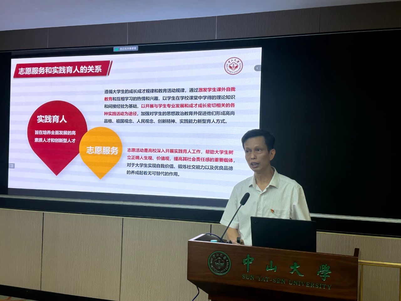 护理学院党委书记陈昌龄同志首先作题为“党建引领青年学生志愿活动,不断提升实践育人成效”的主题报告。他从学思践悟习近平总书记关于青年工作的重要思想切入,汇报了护理专业在实践育人中具有的特点及优势,分享了学院党委推动青年学生志愿服务的举措与成效,并重点介绍了学院在聚焦立德树人,推动青年志愿服务走深实的具体做法:一是党委重视,系统谋划部署人才培养工作;二是用党的创新理论武装青年学生,引导青年学生形成理想信念的正向循环;三是开展系统培训,提升服务社会本领;四是形成党建品牌,如党员志愿服务进校园、进社区、进企事业单位等,开展“急救科普”“送医下乡”“禁毒宣传”等特色活动。最后,他围绕“以政治认同筑牢信仰之基,以思想认同补足精神之钙,以理论认同激扬担当之志,以情感认同答好育人之问”四个方面提出了未来推动实践育人走深走实的工作设想。
