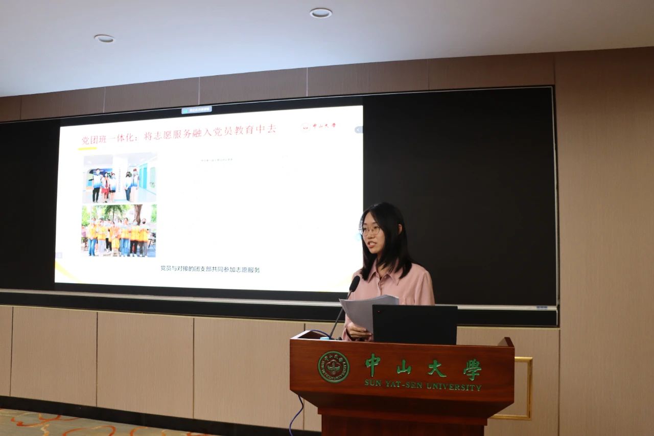 光华口腔医学院·附属口腔医院学生第六党支部杨果同志作题为“党建引领聚合力 志愿服务助发展”的工作分享。她从讲党性、讲责任、讲担当三个方面介绍了本支部党建引领下志愿服务活动情况。支部党员知行合一,争当信念先锋、学习先锋和实干先锋,运用所学所长投身志愿服务,践行全心全意为人民服务的宗旨,同时在实践中接受锻炼、成长成才,朝着口腔临床科学家目标砥砺奋进。