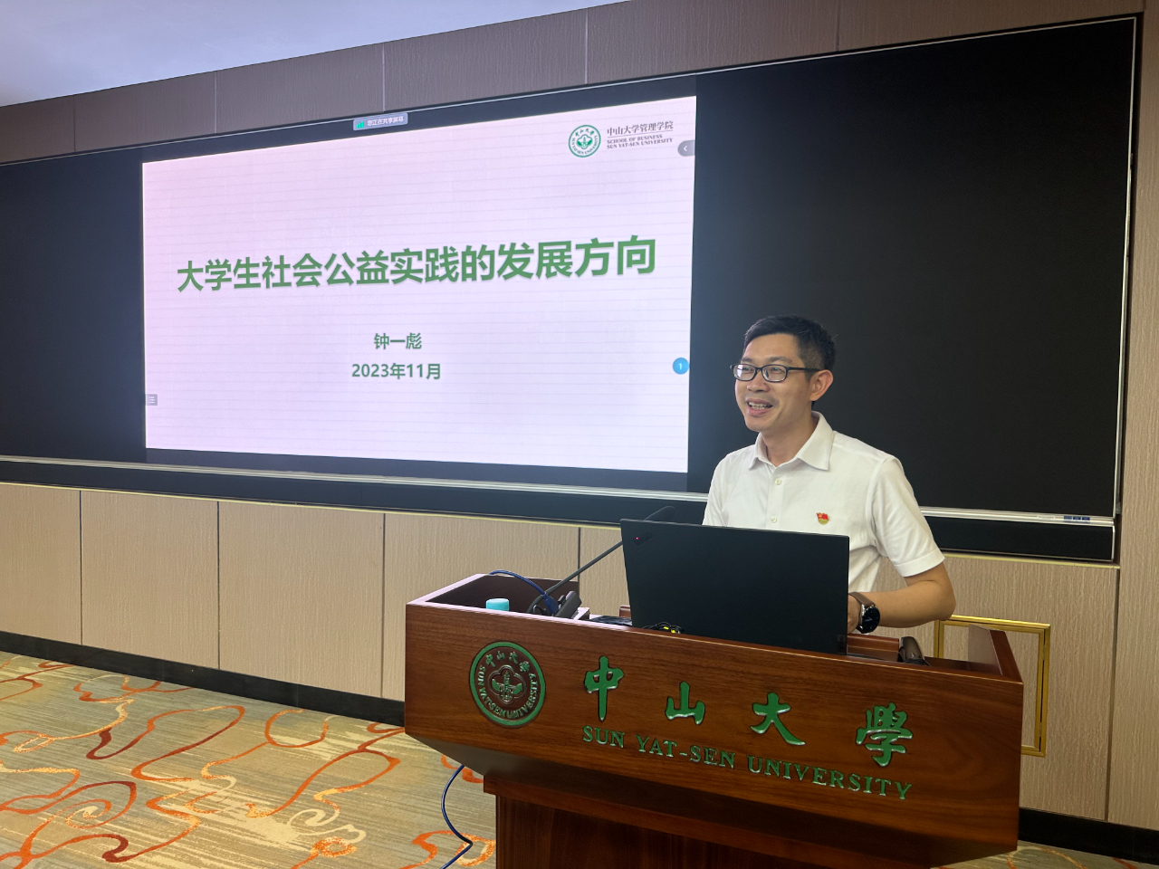 在专题辅导环节,管理学院党委书记钟一彪同志以“大学生社会公益实践的发展方向”为题,围绕价值导向、行动取向、发展指向、社会走向、成果定向等五个方面进行了深入阐述,对于如何提高大学生公益活动的效果、发挥公益活动的育人价值,推进党建工作与社会公益实践相结合等进行了深入而生动的讲解,并与现场参会同志展开了热烈的讨论。