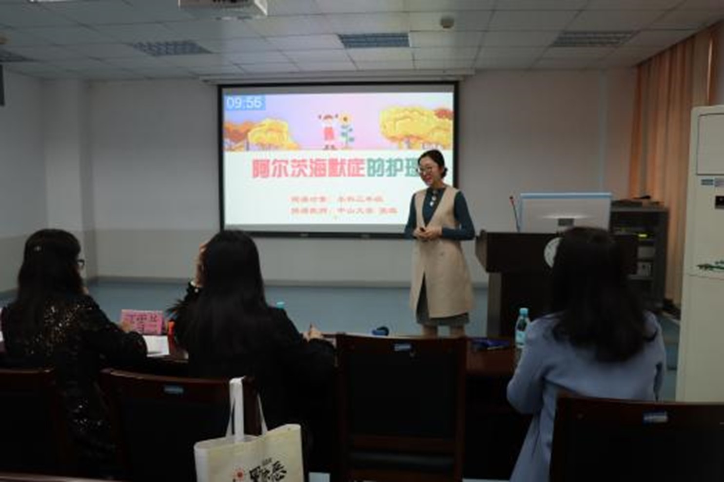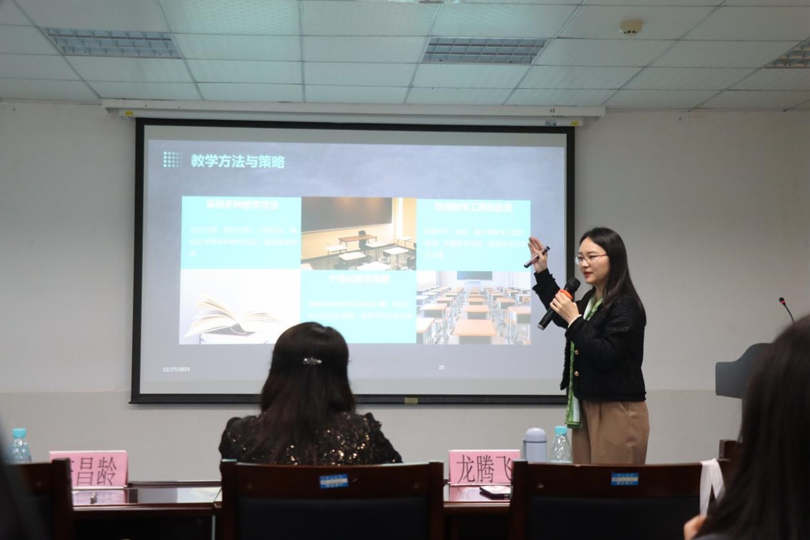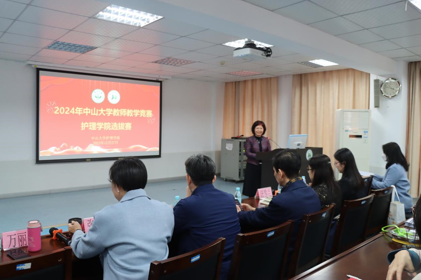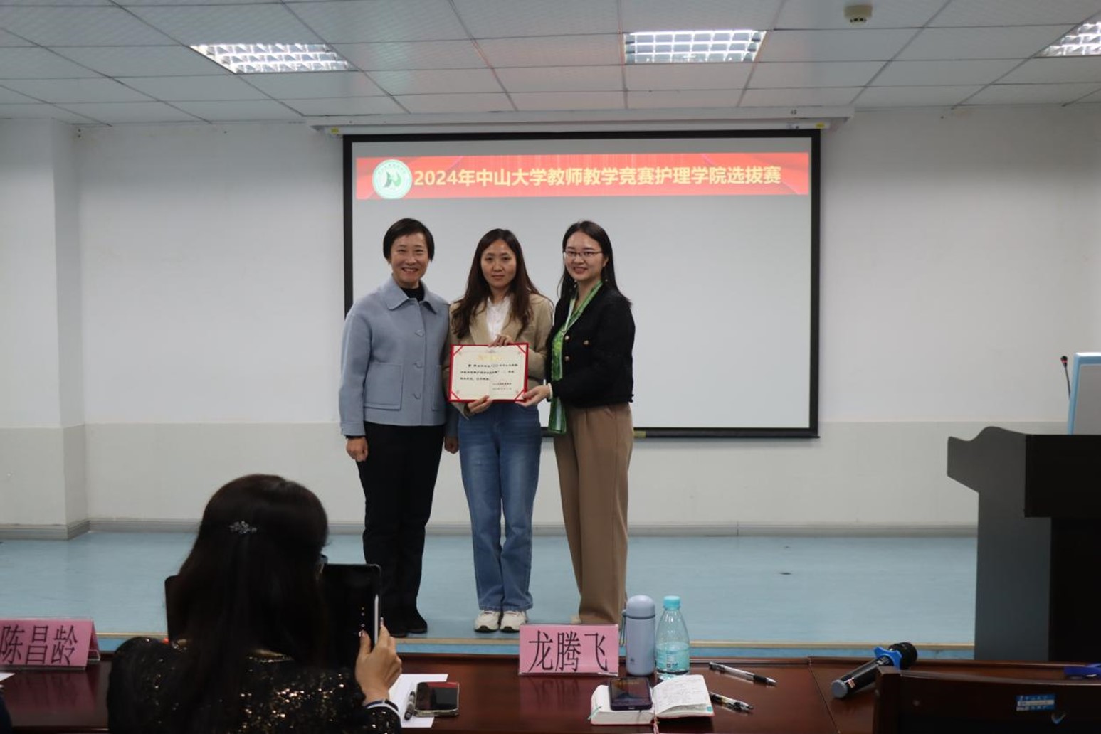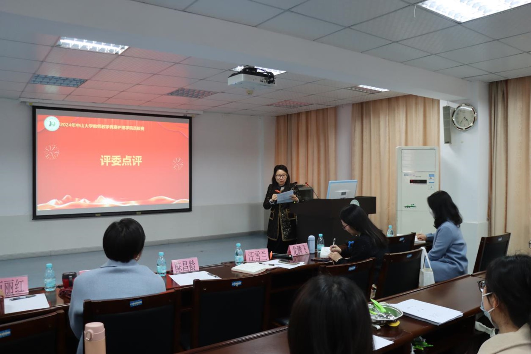 本次大赛共有3位选手参赛,根据抽签顺序依次上台进行授课。各参赛教师教学准备充分,通过课堂讲述、学生互动、教具展示等方法尽情展现个人的课堂魅力,讲课内容涉及老年护理学、内科护理学、通识课等多个领域。教师们精心设计教学内容,整场比赛教学内容丰富多彩、教学过程生动活泼并紧扣立德树人的根本任务。