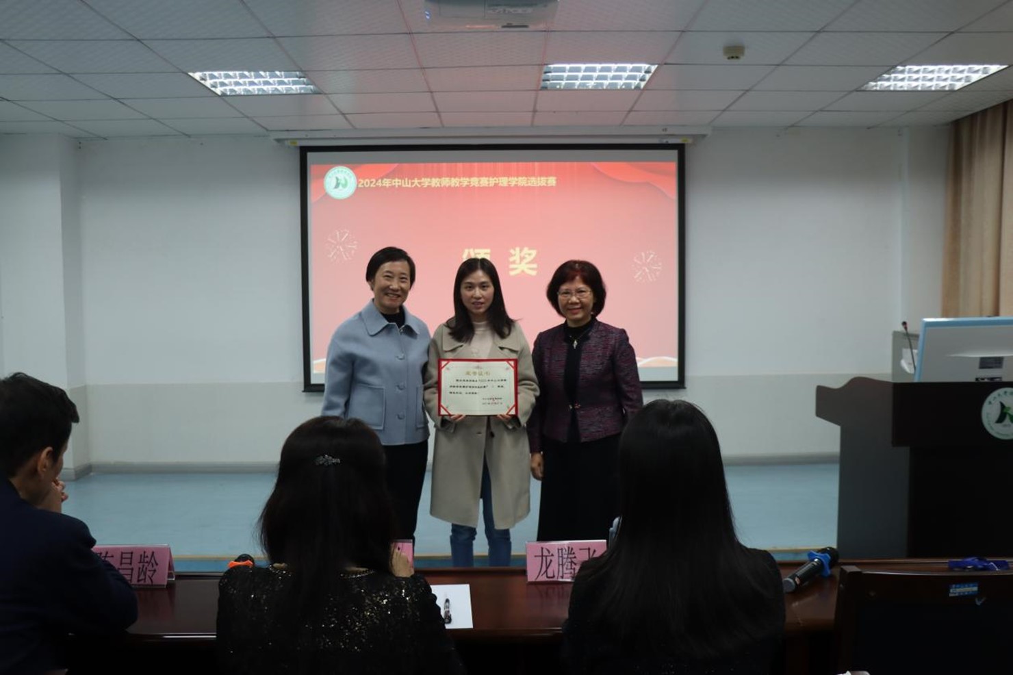 最后,万丽红副院长宣布获奖名单,表彰一等奖张琪副教授、二等奖曹希副教授、三等奖陈杰灵副教授,评委和学院领导为获奖选手颁奖。依据初赛结果,学院推荐张琪副教授参加304永利2024年教师教学竞赛的复赛和决赛。